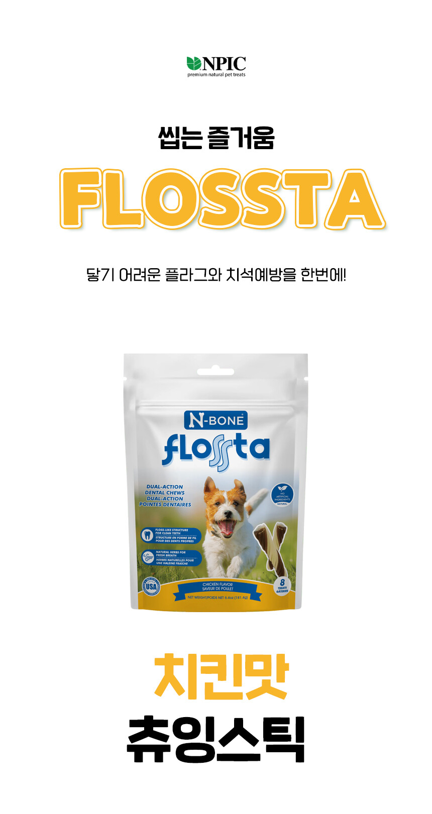 [2+1 행사 덴탈껌] 플로스타 치킨맛 츄잉스틱(교차불가)